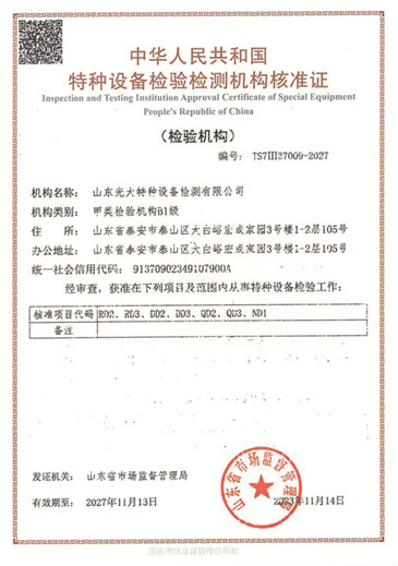 ã€ç‰¹ç§è®¾å¤‡æ£€éªŒèµ„质和检验范围】 RD2 定期检验:第一ã€äºŒã€ä¸‰ç±»å›ºå®šå¼åŽ‹åŠ›å®¹å™¨(ä¸å«è¶…高压容器,大型高压者器ã€çƒå½¢å‚¨ç½) RD3定期检验:第一ã€äºŒç±»å›ºå®šå¼åŽ‹åŠ›é½å™¨(ä¸å«çƒå½¢å‚¨ç½) DD2定期检验:å…¬ç”¨ç®¡é“ DD3定用检:å·¥ä¸šç®¡é“ QD2 定期检验:å¡”å¼èµ·é‡æœºã€æµåЍå¼èµ·é‡æœºï¼Œé—¨åº§å¼èµ·é‡æœºï¼Œå‡é™æœºï¼Œç¼†ç´¢å¼èµ·é‡æœºã€æ €æ†å¼èµ·é‡æœºï¼Œé¢å®šèµ·é‡é‡å°äºŽ 10T(ä¸å«10T)的桥å¼èµ·çœ‹æœºå’Œé—¨å¼èµ·é‡æœº QD3定期检验:æµåЍå¼èµ·é‡æœºï¼Œå¡”å¼èµ·é‡æœºï¼Œå‡é™æœº ND1定期检验:场(厂)内专用机动车辆 ã€...
