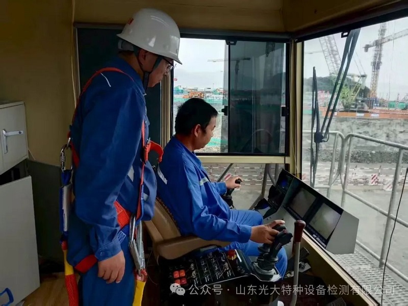 近日,山东光大特种设备检测有限公司机电事业部顺利完成一台最大额定起重量2000吨履带式起重机的定期检验工作,为保障大型工程设备的安全运行和推进核电重大工程项目发挥重要作用。